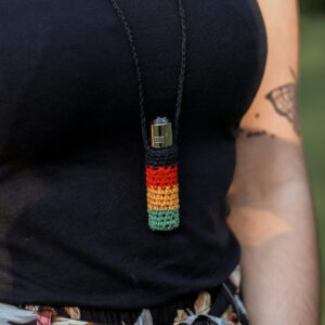 Skórzana kopertówka z bawełną gheri
